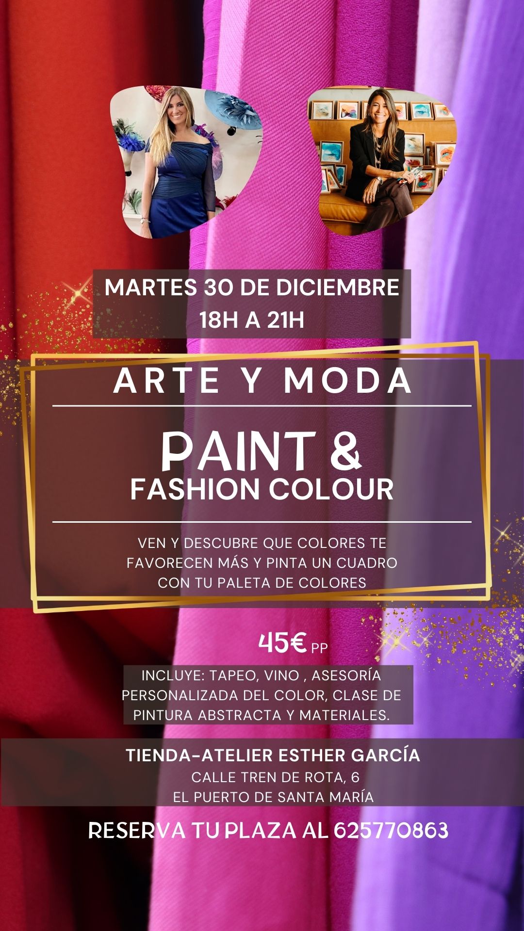 Asesoría de color y estilismo personalizado, taller de pintura abstracta y vino, acompañado de tapeo.